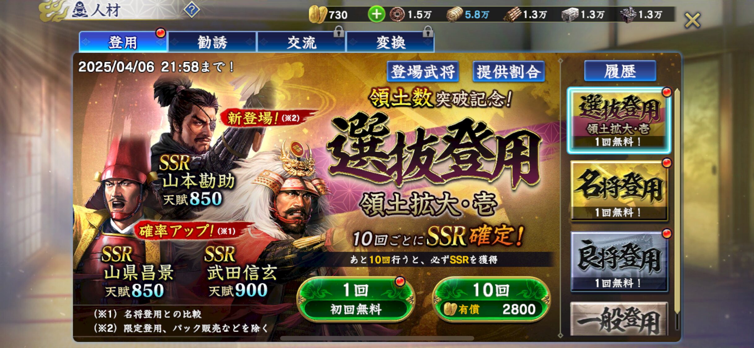 おすすめは、ガチャで強力な武将をゲットすることです!